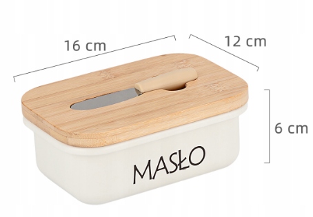 • Wymiary maselniczki: 15,5 cm (długość) x 10,5 cm (szerokość) x 6,5 cm (wysokość)