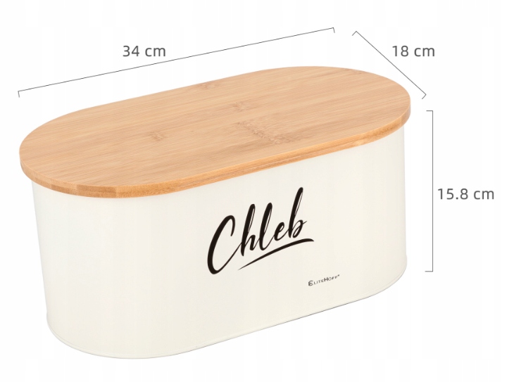 • Wymiary chlebaka: 34 cm (długość) x 18,5 cm (szerokość) x 15 cm (wysokość)
