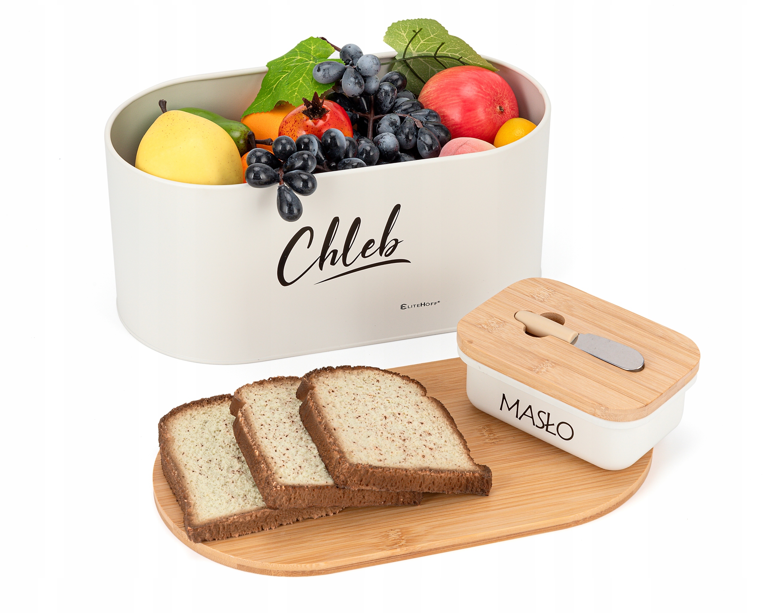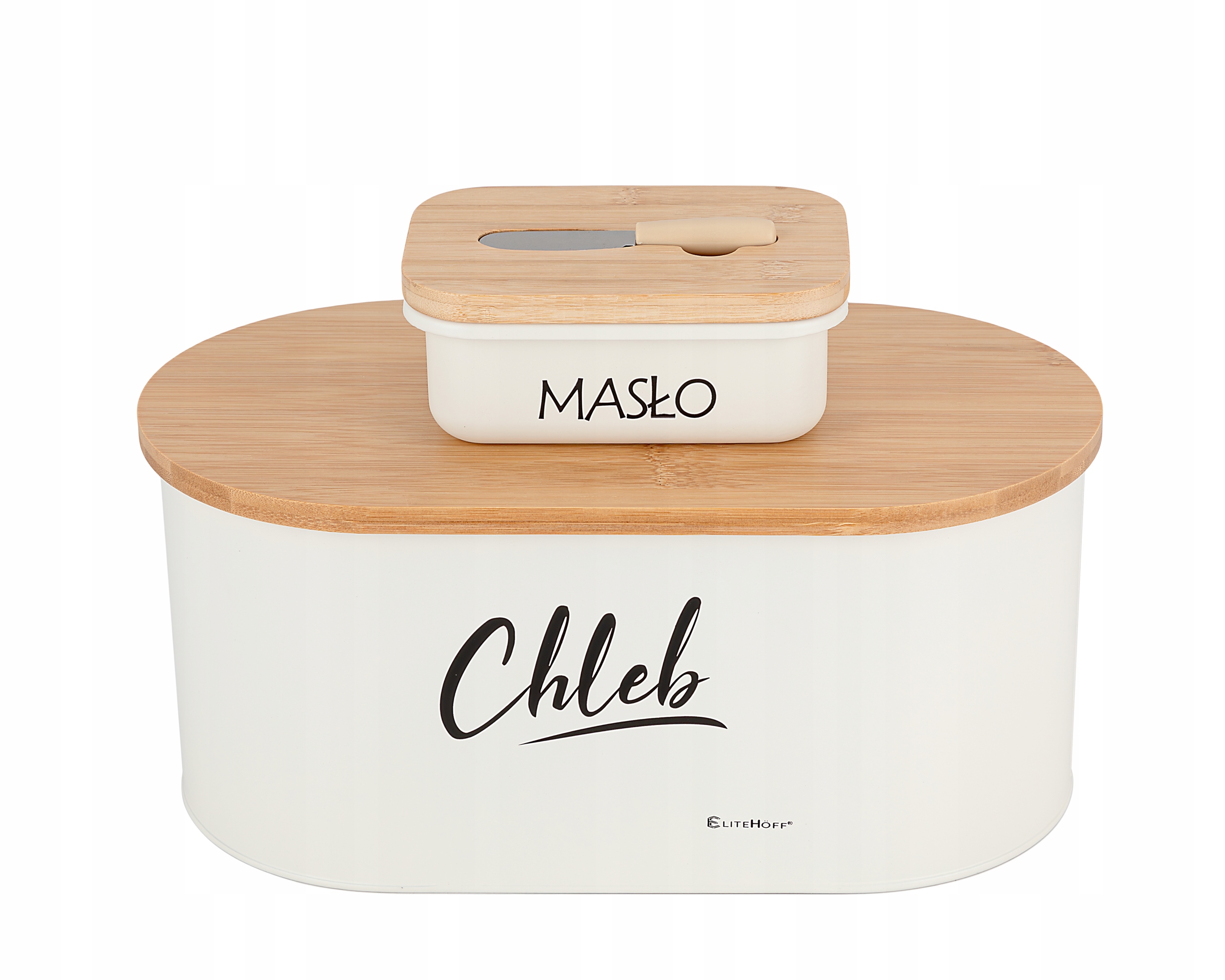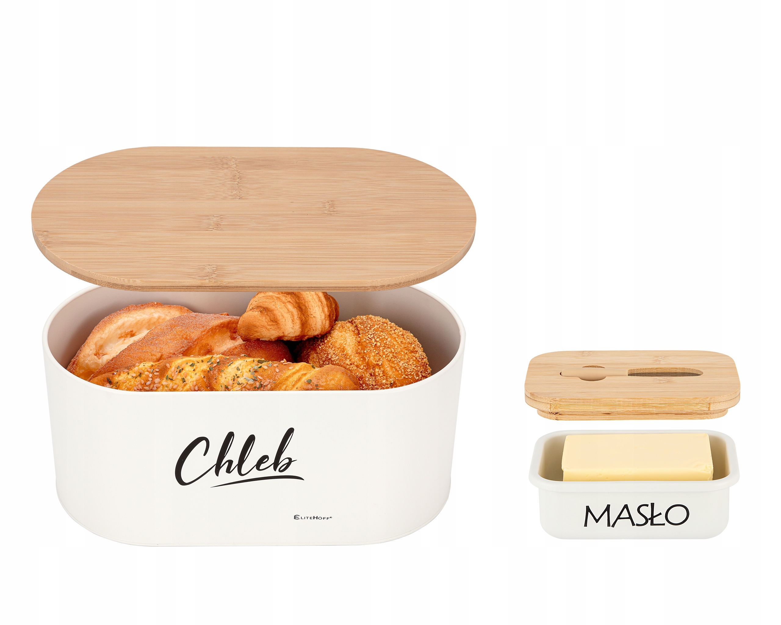 Chlebak bambusowy biały z maselniczką i nożykiem – zestaw EliteHoff