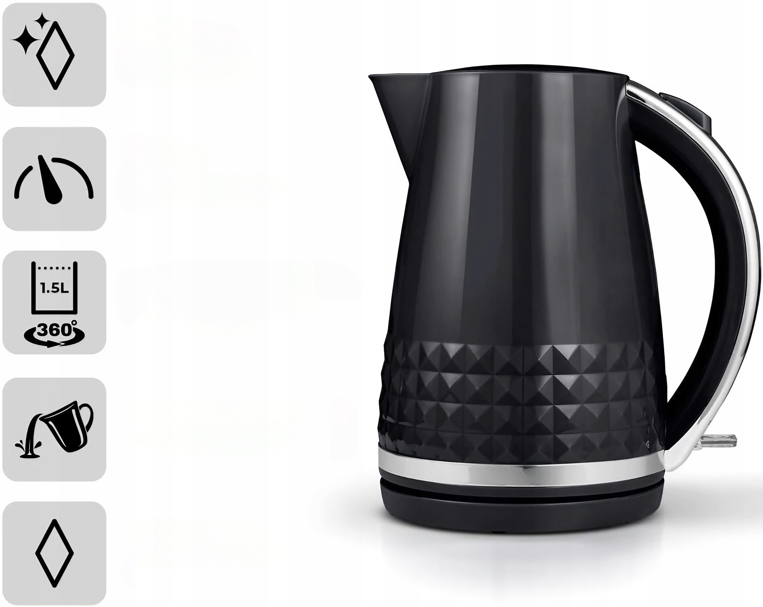 Czajnik elektryczny bezprzewodowy 2150W 1,7L – modny czarny filtr i nowoczesny design