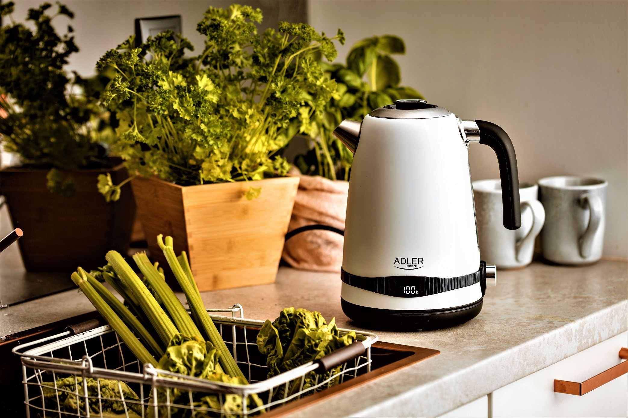 Czajnik wyposażony jest w wygodną, zdejmowaną pokrywę, co ułatwia czyszczenie i nalewanie wody. Centralny styk pozwala na obracanie podstawy o 360°, dzięki czemu czajnik można obsługiwać jedną ręką. Nowoczesny wyświetlacz LED informuje o temperaturze, a sygnał dźwiękowy sygnalizuje rozpoczęcie i zakończenie gotowania wody.