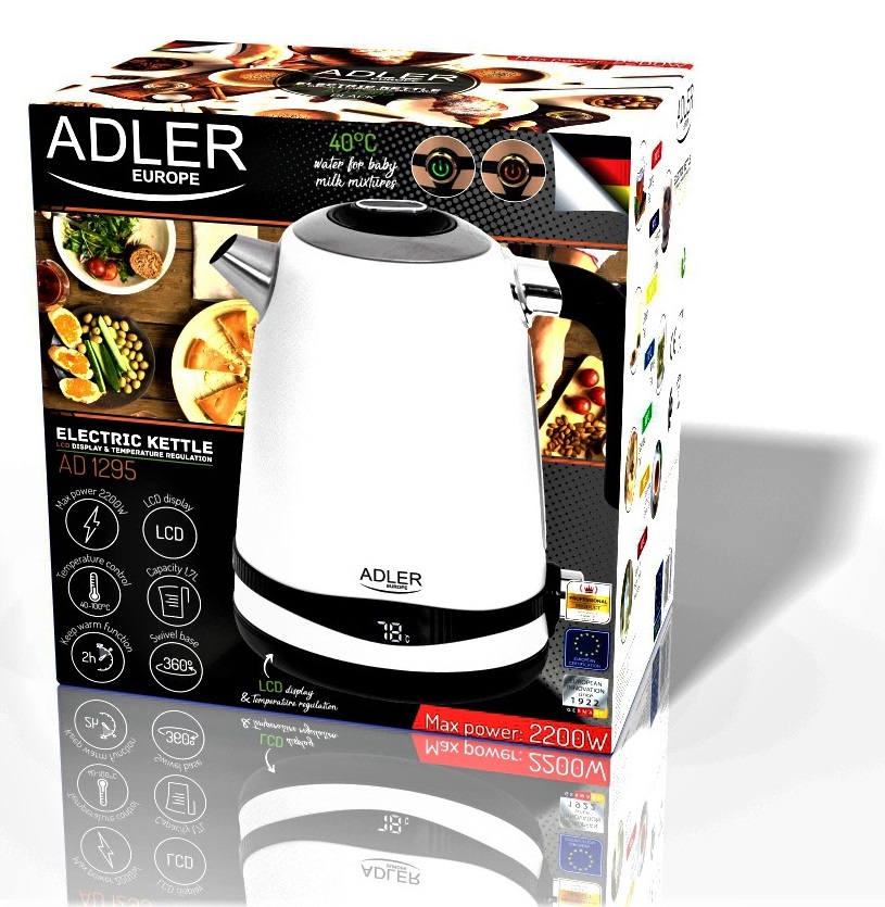 Czajnik wyposażony jest w wygodną, zdejmowaną pokrywę, co ułatwia czyszczenie i nalewanie wody. Centralny styk pozwala na obracanie podstawy o 360°, dzięki czemu czajnik można obsługiwać jedną ręką. Nowoczesny wyświetlacz LED informuje o temperaturze, a sygnał dźwiękowy sygnalizuje rozpoczęcie i zakończenie gotowania wody.