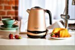 Funkcja regulacji temperatury sprawia, że czajnik jest idealny do przygotowania różnych napojów, od mleka dla dzieci (40°C), po herbaty zielone (70-80°C) i kawy. To niezastąpione urządzenie w kuchni, gdzie liczy się wygoda, estetyka i precyzja.