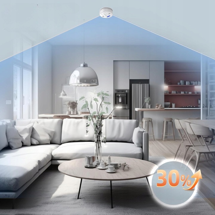 Niewielkie wymiary (100x100x38 mm) sprawiają, że czujnik wpasowuje się w każdą aranżację wnętrza, pozostając dyskretnym elementem wyposażenia.