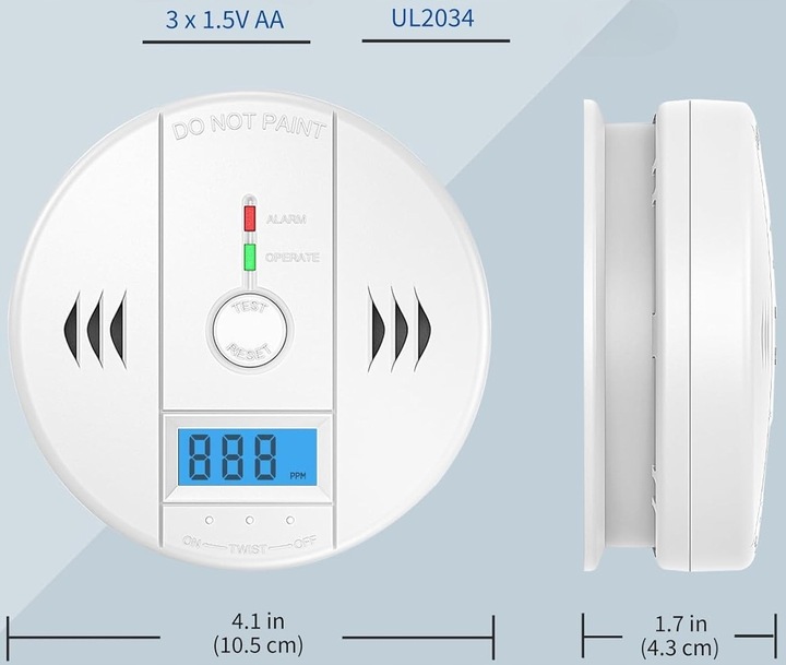 Urządzenie monitoruje poziom tlenku węgla w otoczeniu. Po przekroczeniu dopuszczalnego stężenia czadu emituje głośny alarm dźwiękowy oraz powiadomienie wizualne.