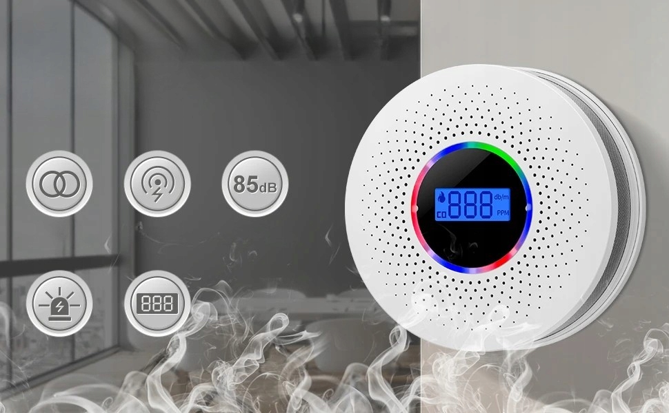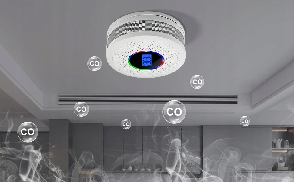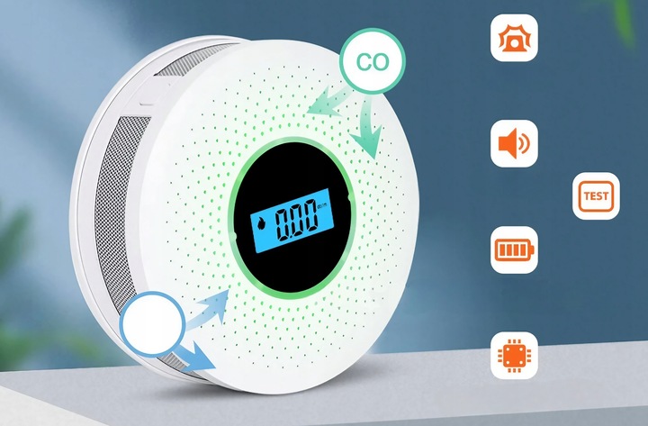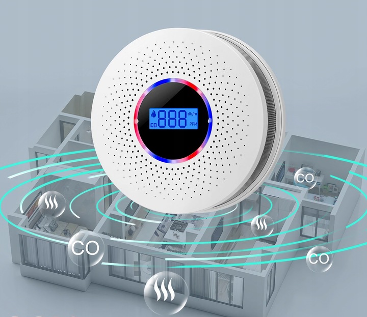 Certyfikowany czujnik dymu i tlenku węgla z wyświetlaczem LCD