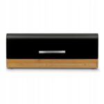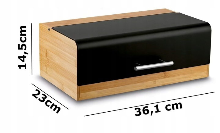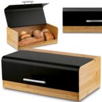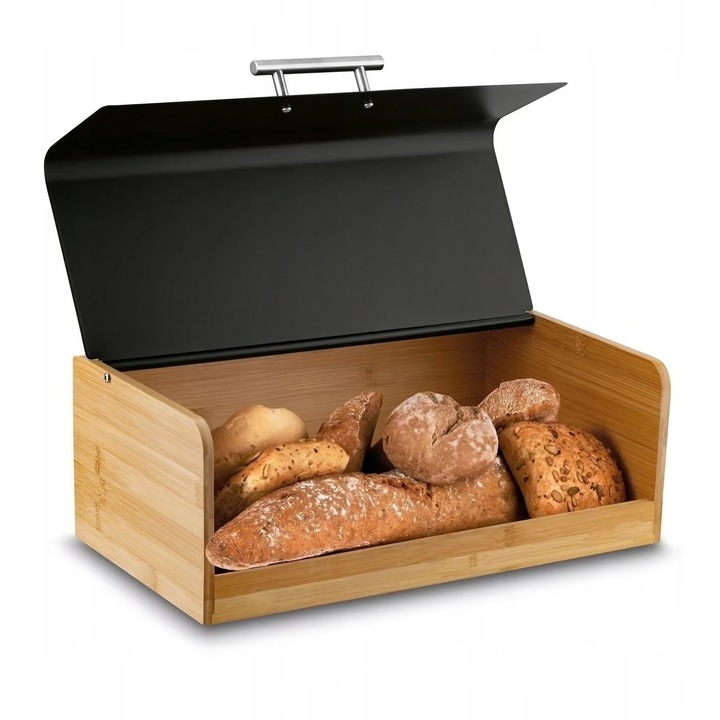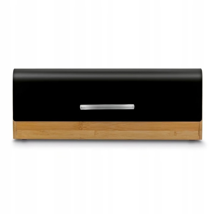 Nowoczesna forma chlebaka, jego efektowny kształt oraz połączenie metalu w czarnym kolorze wraz z drewnem bambusowym świetnie prezentuje się na blacie. Pomalowany proszkowo gwarantuje większą trwałość i odporność na korozję.