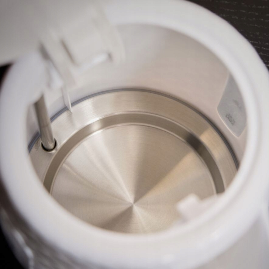 - Bezpieczne użytkowanie: Potrójny system zabezpieczeń wyłącza czajnik po zagotowaniu wody, przy braku wody lub przy zdjęciu z podstawy.