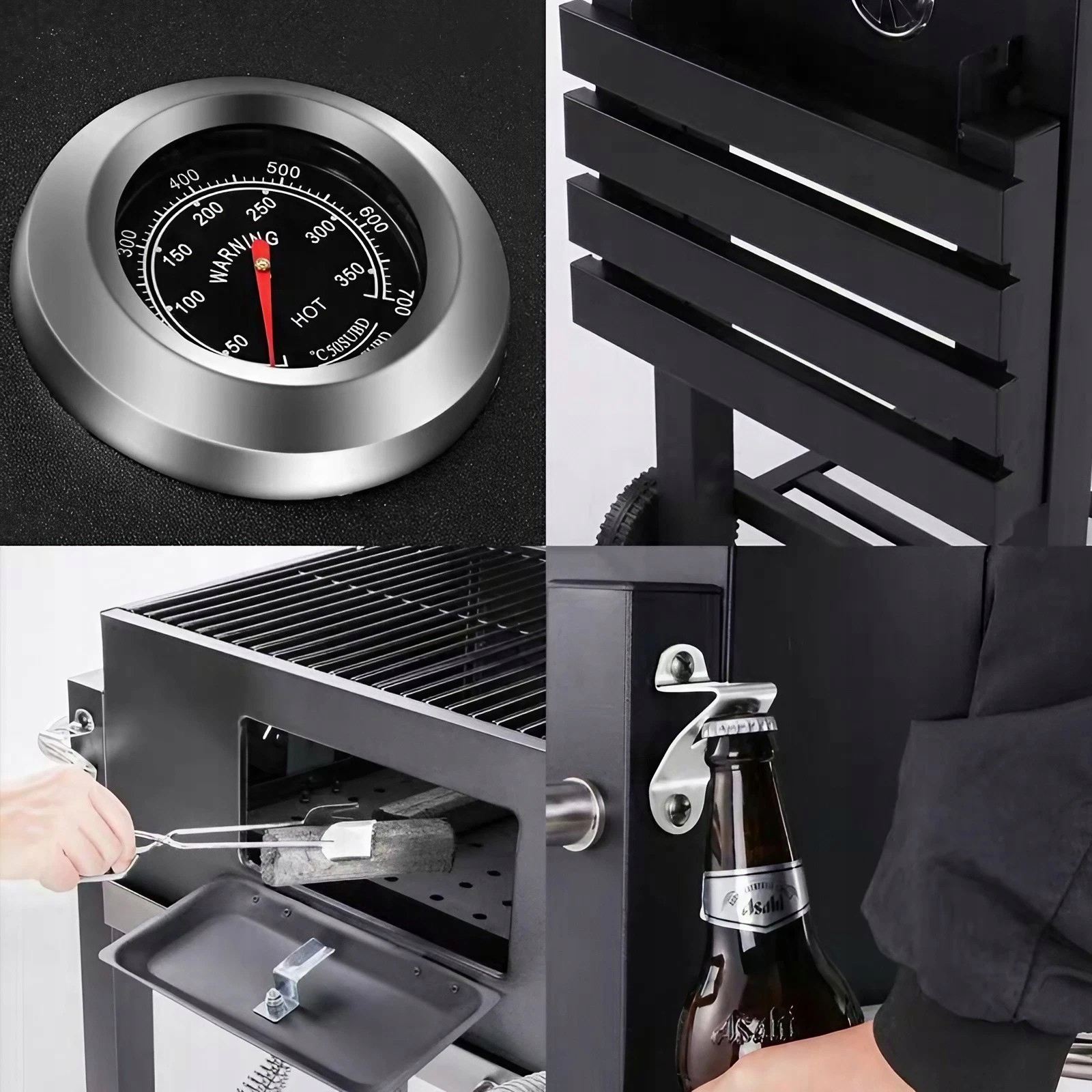 Dzięki otwieranym drzwiczkom łatwo można rozgarnąć żar lub też go przemieszać bez konieczności zdejmowania rusztu co w momencie gdy jest on pełny jest bardzo problematyczne gdyż wiązałoby się to z zdejmowaniem wszystkiego z rusztu.