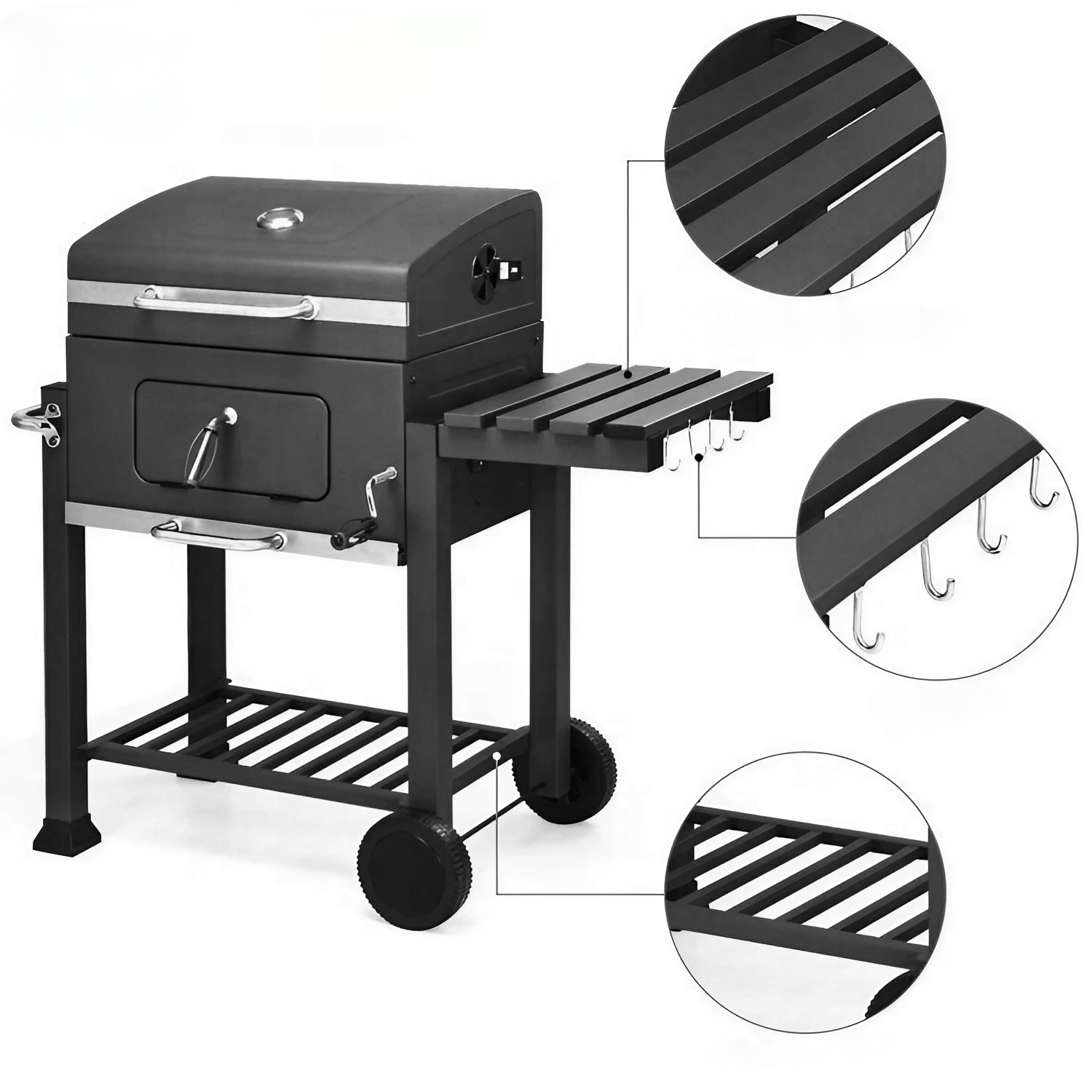 ✨Kółka dają możliwość swobodnego przestawiania grilla w dowolne miejsce bez potrzeby użycia siły.
