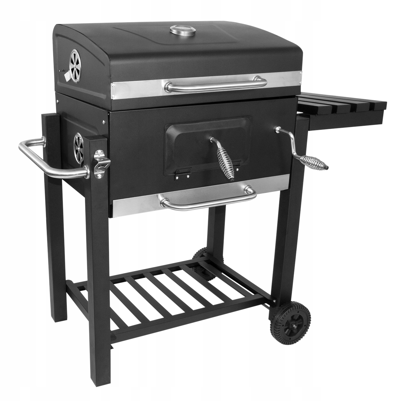 Dzięki korbie można regulować wysokość paleniska, dzięki czemu można odpowiednio dostosować temperaturę i odległość od rusztu.