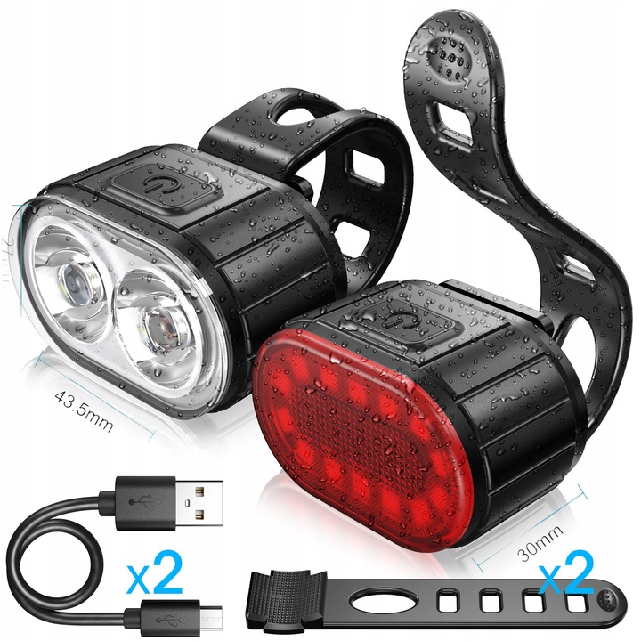 WODOODPORNA LAMPKA ROWEROWA Z POJEMNYM AKUMULATOREM + TYLNA LAMPKA LED
