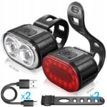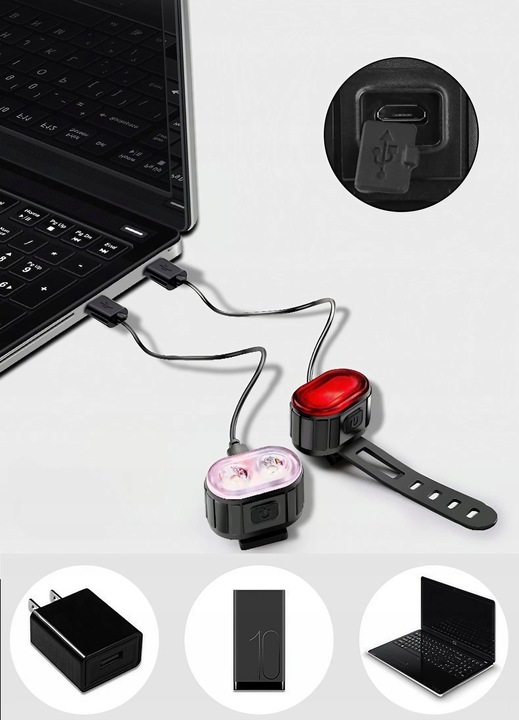 WODOODPORNA LAMPKA ROWEROWA Z POJEMNYM AKUMULATOREM + TYLNA LAMPKA LED