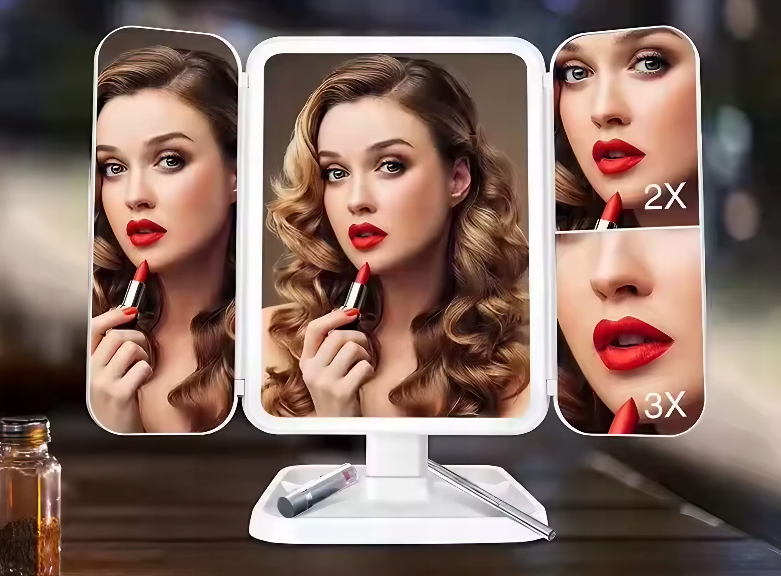 Dzięki trzem panelom uzyskasz pełną kontrolę nad swoim makijażem z każdej perspektywy. Sprawdzisz każdy detal twarzy, fryzury czy biżuterii z różnych stron!