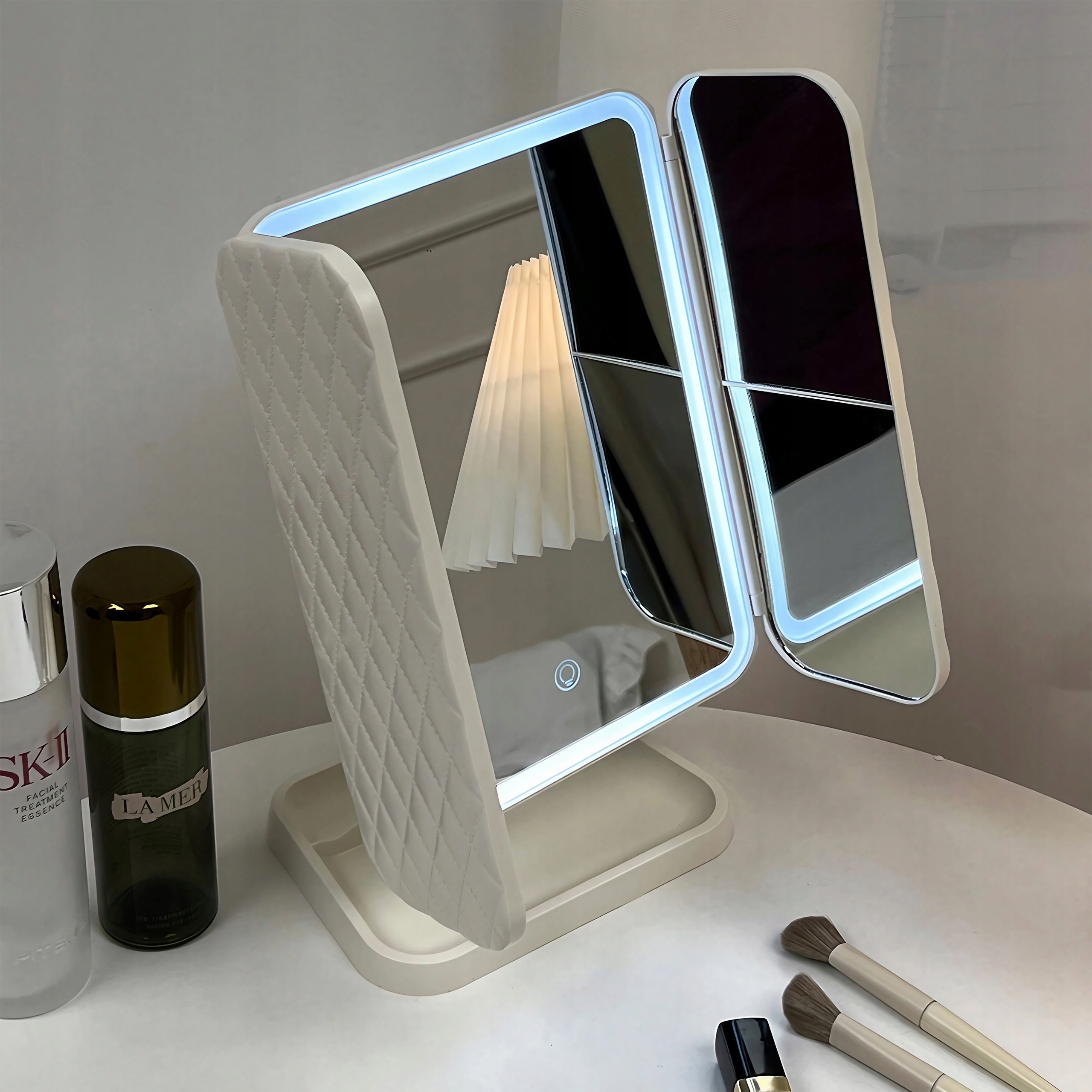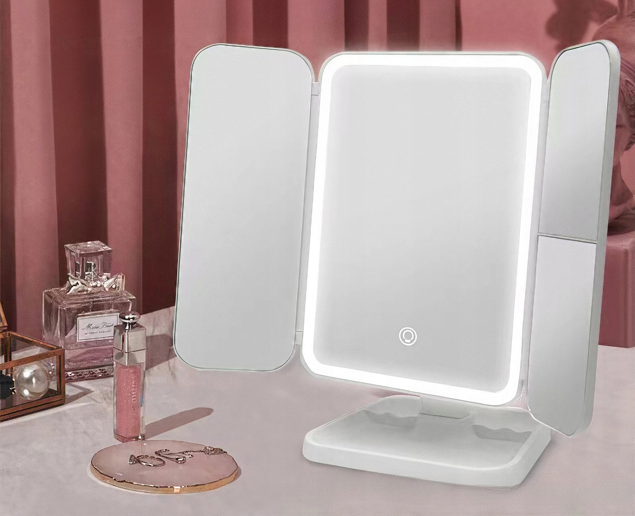 Szukasz czegoś, co odmieni Twój codzienny rytuał piękna i doda mu odrobiny luksusu? Nasze potrójne lustro LED to nie tylko doskonałe narzędzie do precyzyjnego makijażu, ale także stylowy dodatek, który rozświetli każde wnętrze. Dzięki wbudowanemu oświetleniu LED, regulacji kąta oraz eleganckiej, składanej konstrukcji, stanie się Twoim niezastąpionym pomocnikiem! ✨