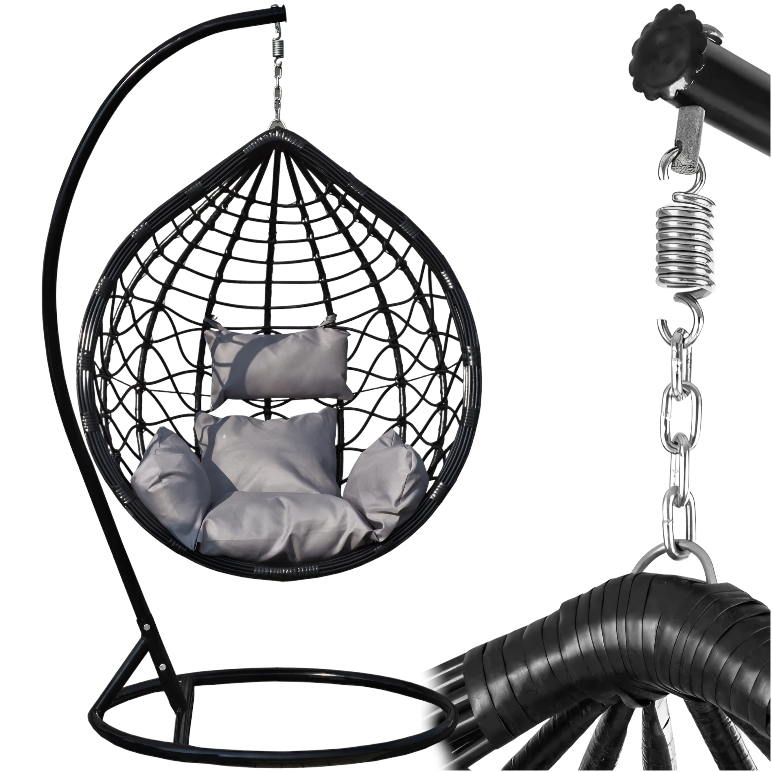 Fotel wiszący ogrodowy kokon GRUBY SPLOT 150KG XXL + Poduszki