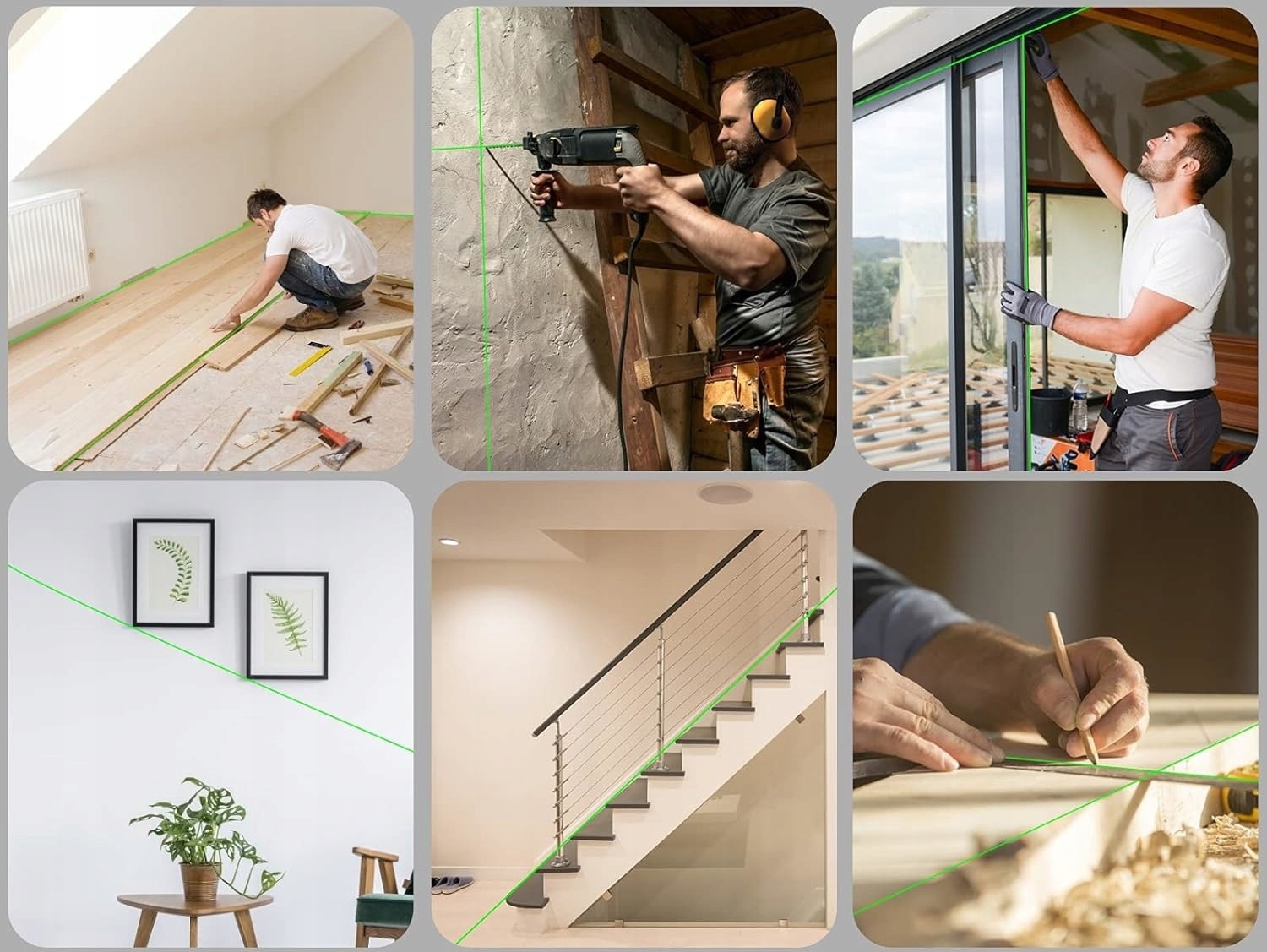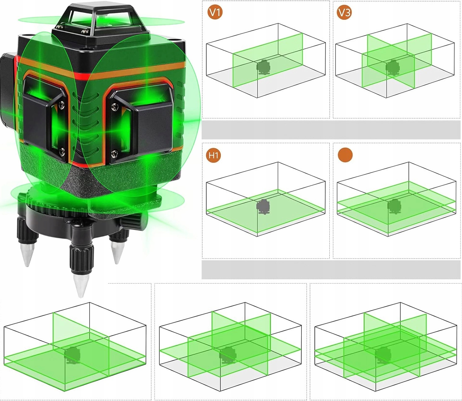 • Zielony laser o dużym zasięgu – widoczność linii do 25 m, idealny do pracy na dużych powierzchniach.