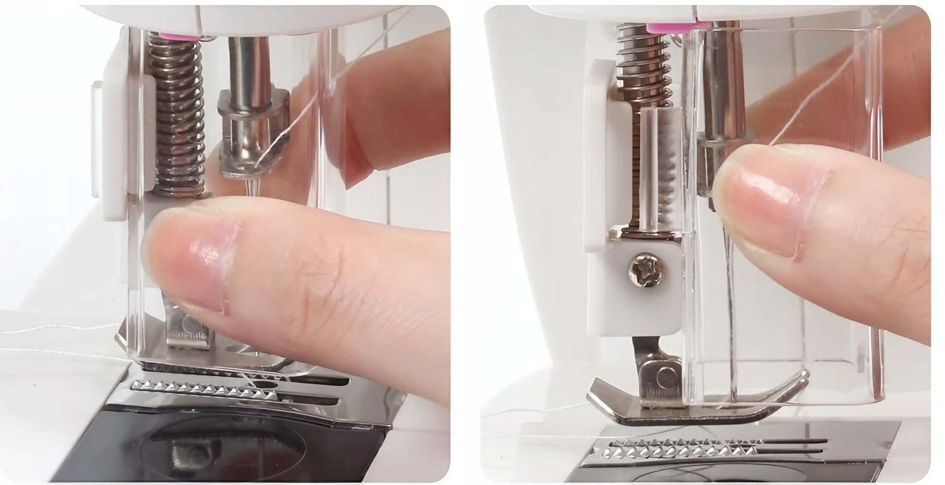 - Funkcjonalność: Maszyna szyje dwoma nitkami (na górze i na dole), co pozwala na trwałe zszywanie różnych materiałów.