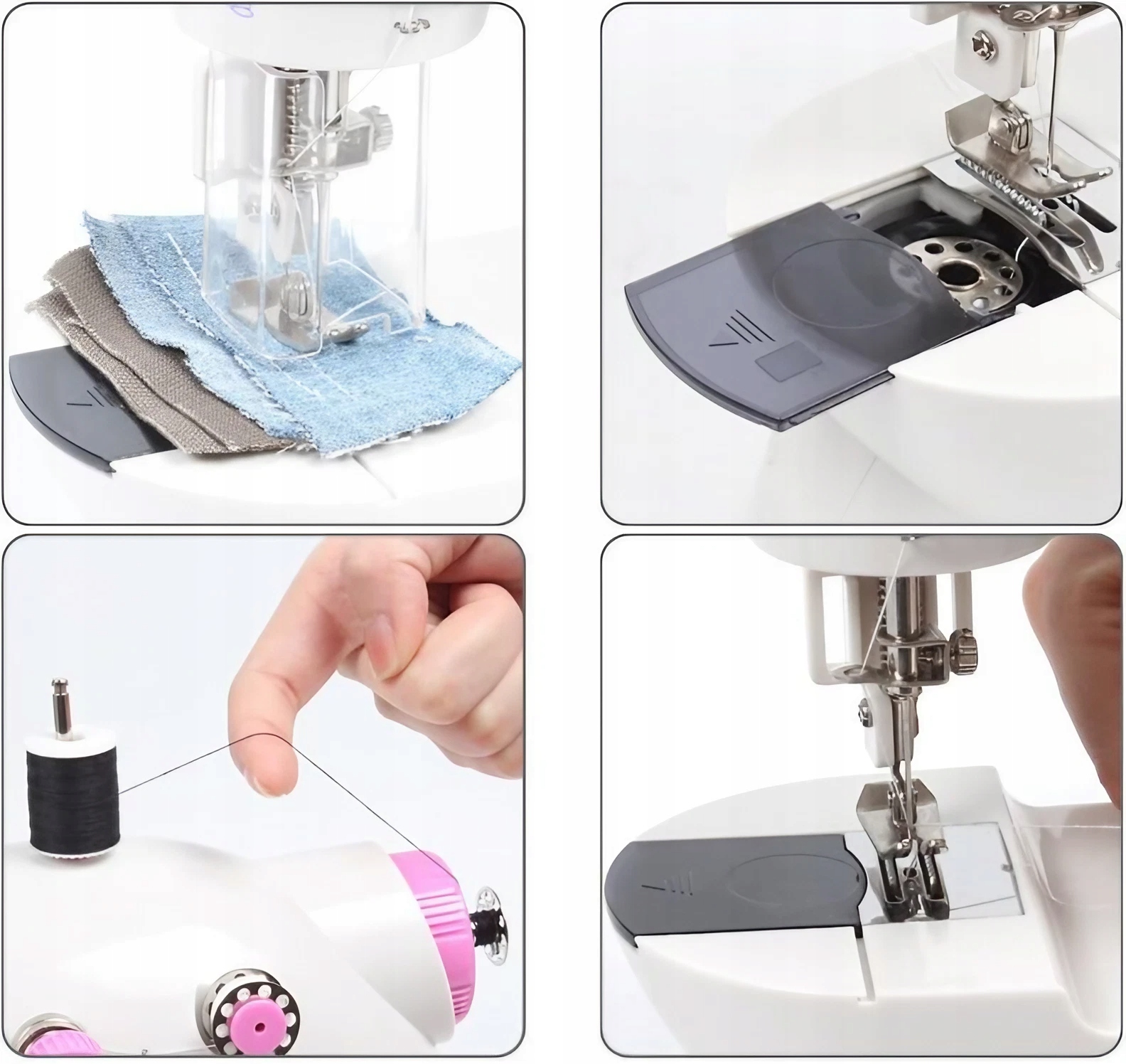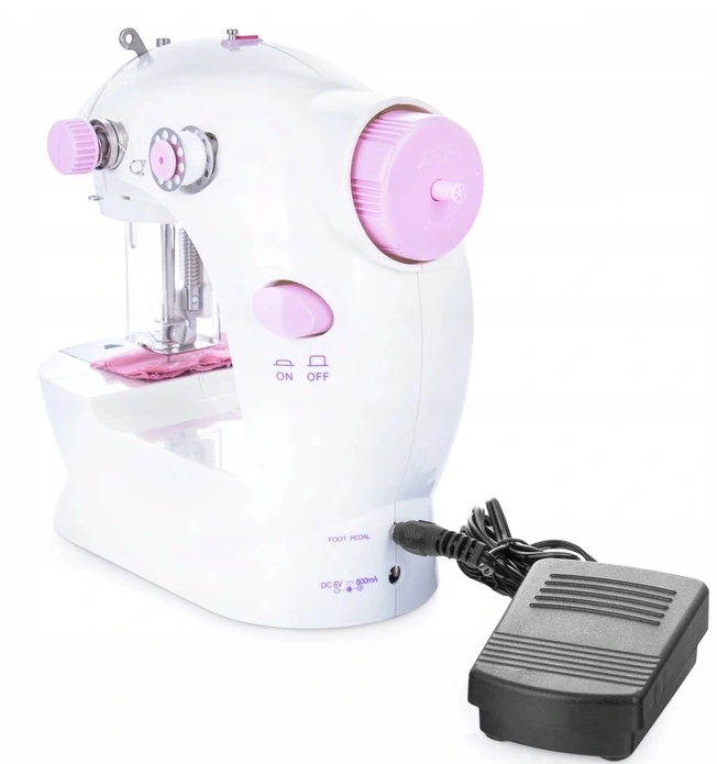 Maszyna została zaprojektowana z myślą o potrzebach najmłodszych. Jest lekka, łatwa do przenoszenia i może być zasilana sieciowo lub bateryjnie, co zapewnia swobodę użytkowania. Dodatkowo posiada lampkę LED i regulator obrotów w formie pedału, co nadaje jej profesjonalny charakter, imitując działanie pełnowymiarowych maszyn do szycia.
