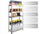 ✔️ Regał został wykonany z wysokiej jakości metalu, co zapewnia mu wytrzymałość i trwałość. Każda z solidnych i eleganckich półek udźwignie osobno przy równomiernym rozłożeniu ciężaru 175kg. Zastosowanie wysokiej jakości materiałów gwarantuje udźwig całej konstrukcji aż do 875 kg.  Dzięki temu regał jest idealny do przechowywania cięższych przedmiotów, narzędzi, skrzynek, kartonów, a nawet dokumentów.