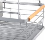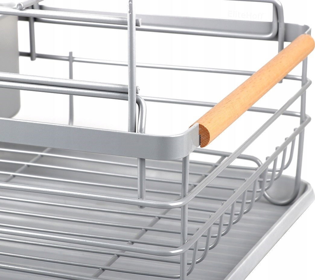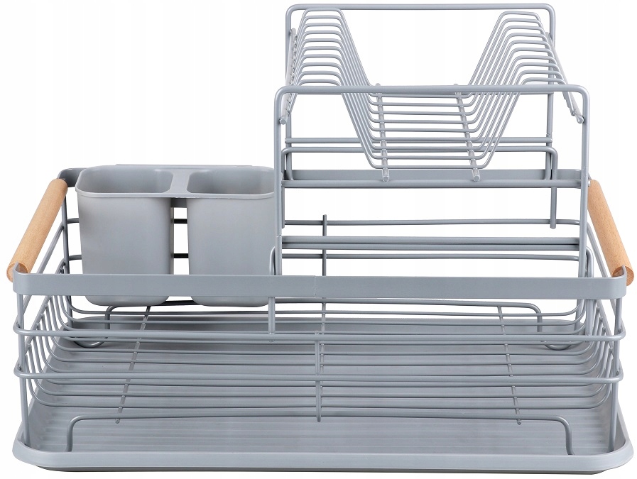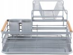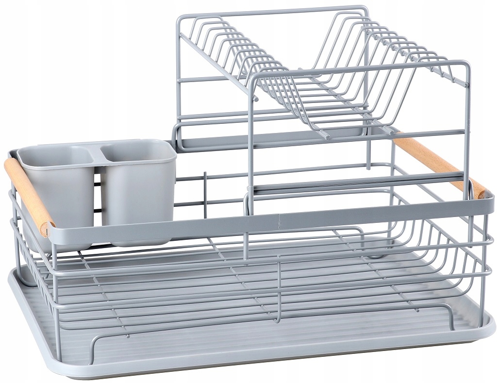Suszarka do Naczyń Dwupoziomowa Szara XXL z Drewnianymi Rączkami – Elegancki Ociekacz na Talerze i Sztućce