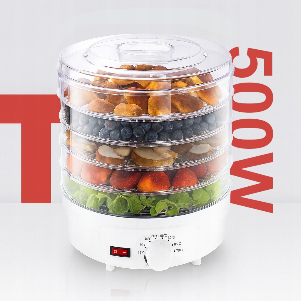 DUŻA SUSZARKA DO GRZYBÓW I OWOCÓW WARZYW SPOŻYWCZA REGULACJA 5x SITO 600W