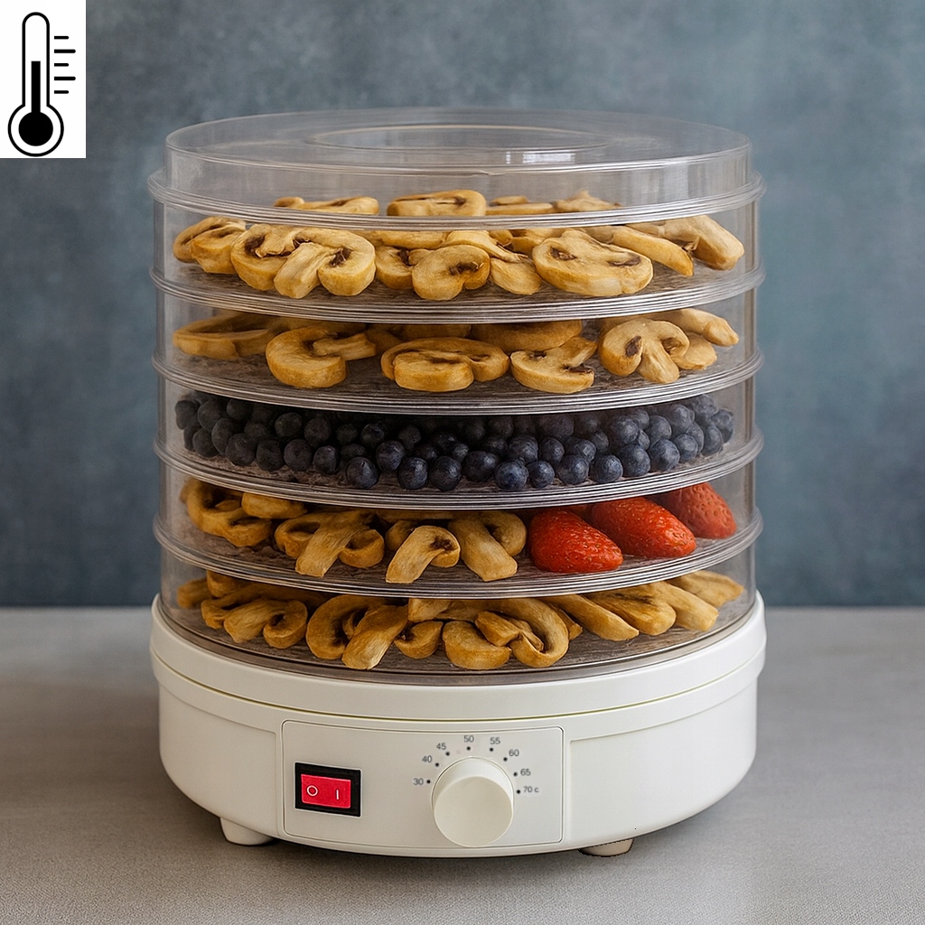 ⭐️ Dzięki regulacji temperatury możesz dopasować proces suszenia do każdego produktu, zachowując jego smak, aromat i wartości odżywcze.