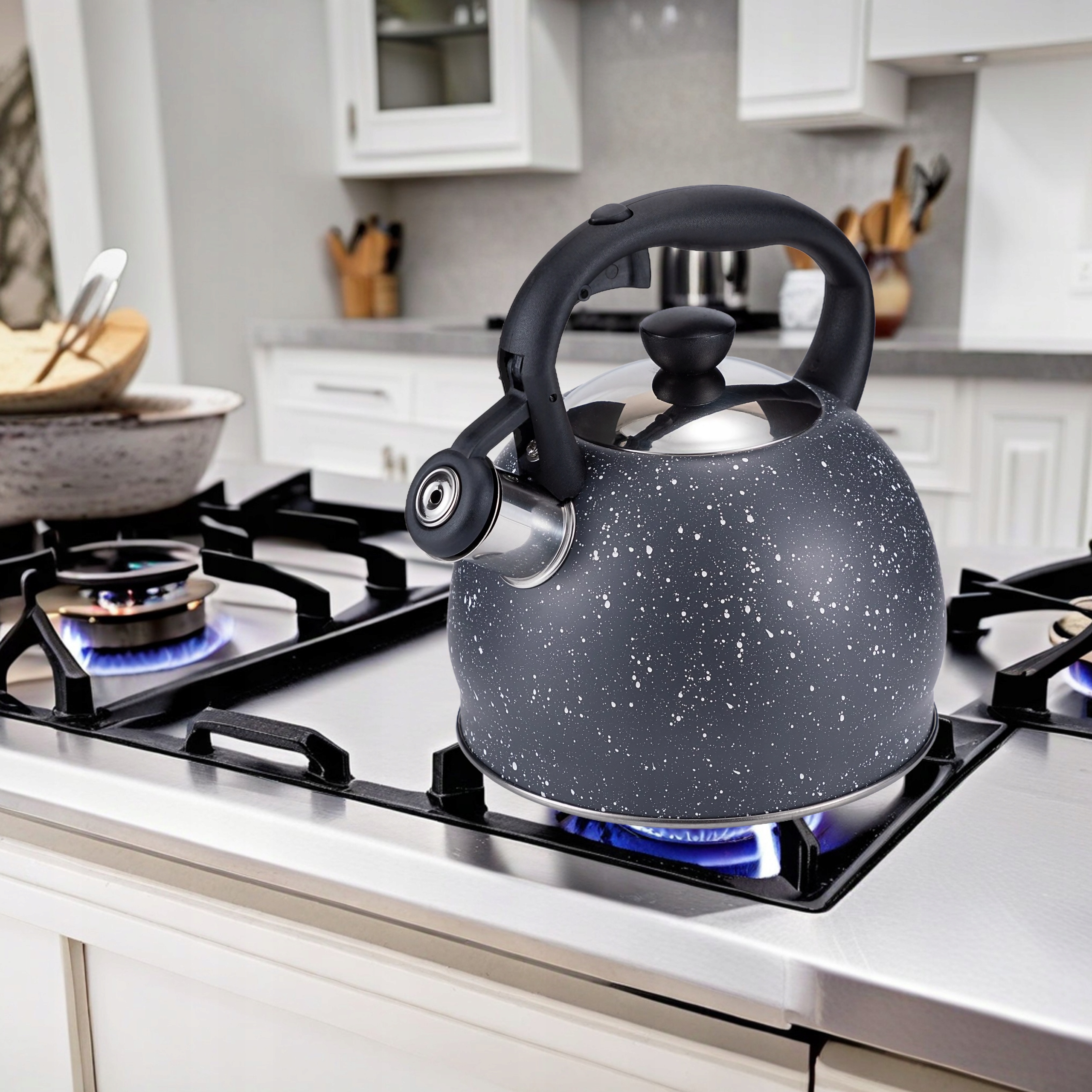 Szary Czajnik na Gaz i Indukcję 2L z Gwizdkiem – Stal Nierdzewna Elitehoff