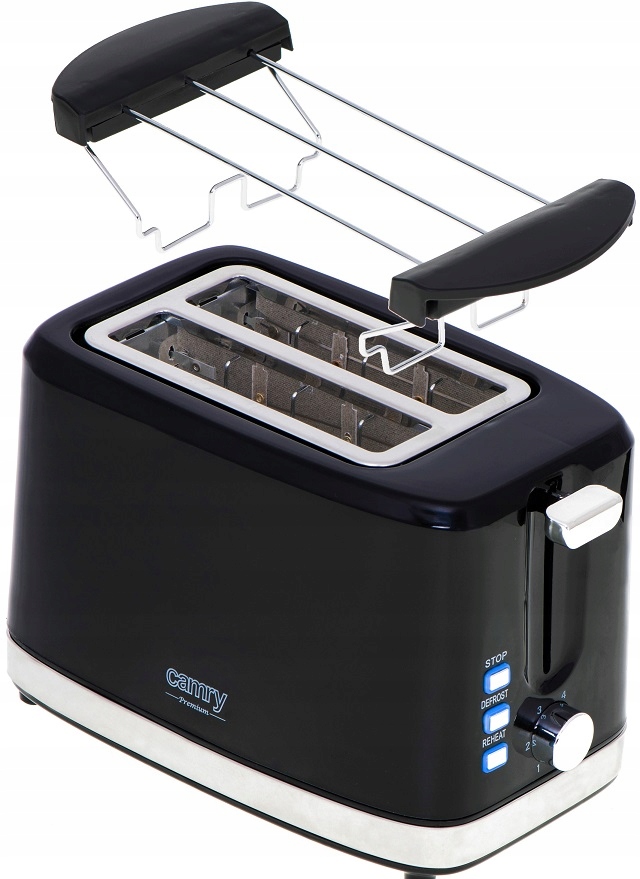 Toster 900W na dwie kromki z rusztem do bułek, funkcja STOP, 6-stopniowa regulacja