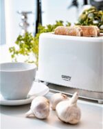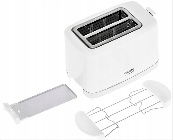 Zastosowane technologie, takie jak automatyczne wyłączanie i funkcja STOP, zapewniają pełne bezpieczeństwo użytkowania, a obudowa pozostaje chłodna nawet podczas pracy. Dla łatwiejszego utrzymania porządku, toster posiada specjalną tackę na okruchy oraz praktyczny schowek na przewód. Dzięki nowoczesnemu wyglądowi i klasycznej białej kolorystyce toster Camry doskonale wpisze się w każdą aranżację kuchenną.