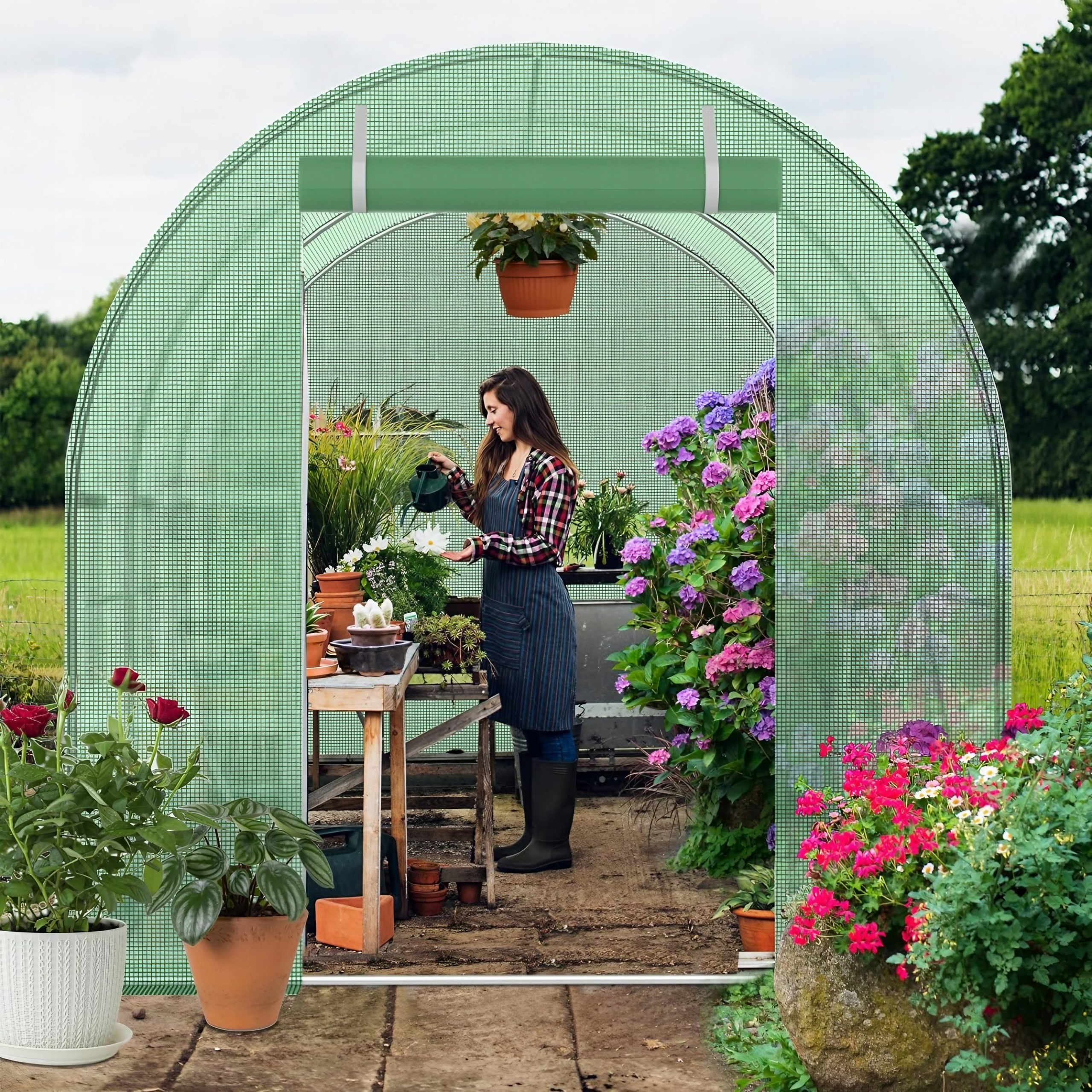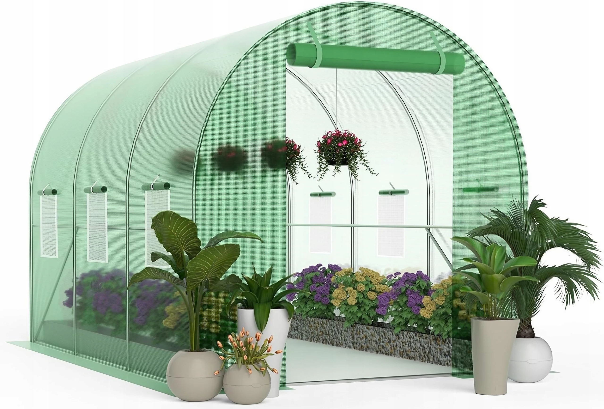 Tunel foliowy ogrodowy z oknami i moskitierą