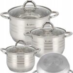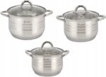 KOMPLET ZESTAW 3 GARNKÓW STALOWYCH 1,8L 2,5L 3,4L STAL NIERDZEWNA GAZ INDUK